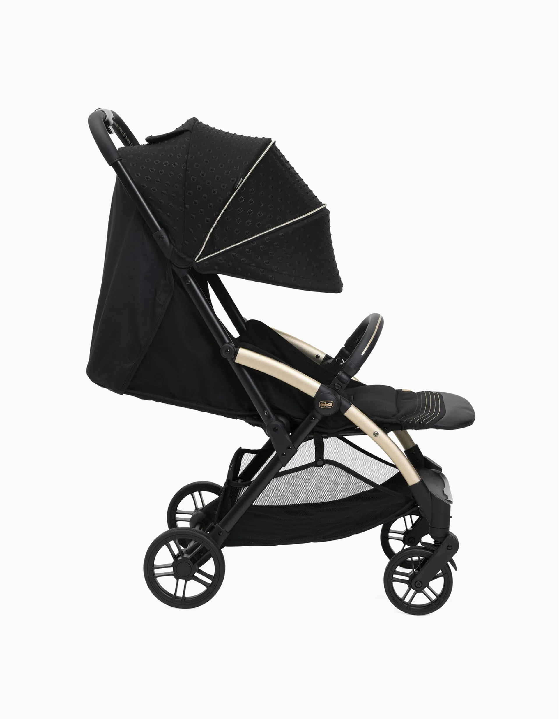 Chicco's Goody XPlus is a self-closing pram, approved from birth to 22kg (approximately 4 years). The Goody XPlus pram combines OneTouch self-closing technology with elegance and glamour, offering parents a pram made to stand out for both its elegance and style. Goody XPlus can be easily transformed into a travel system with the Kory Plus i-Size and Kory Essential i-Size car seats (and the Goody Xplus adapters, sold separately). With shock absorbers and ball bearings on all wheels to ensure a smooth and comfortable ride on all surfaces. Extraordinary ease of use also thanks to the ball bearings in the front steerable wheels. Coloured anodised tubes, soft fabrics with high-quality finishes and premium trim inserts for a truly unique look. The seat is wide and padded for maximum comfort. It includes an extendable canopy with a mesh window, water-repellent fabric and UV50+ protection. The backrest is fully reclining and adjustable to 4 positions. The leg rest is also adjustable. Everything has been thought out to ensure peaceful journeys for both parents and babies. Pram weight: 7.5kg. Open pram dimensions (HxWxD): 86x47x106cm. Closed pram dimensions (HxWxD): 28x47x59.